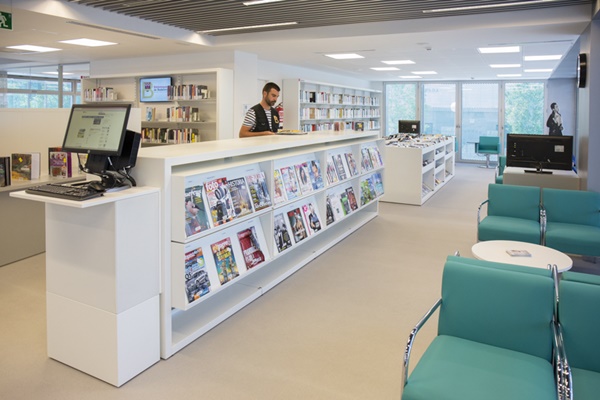 - A la planta d'accés hi ha la zona d'acollida i promoció, l'àrea de diaris, l'espai polivalent, la zona infantil i la zona de treball intern.