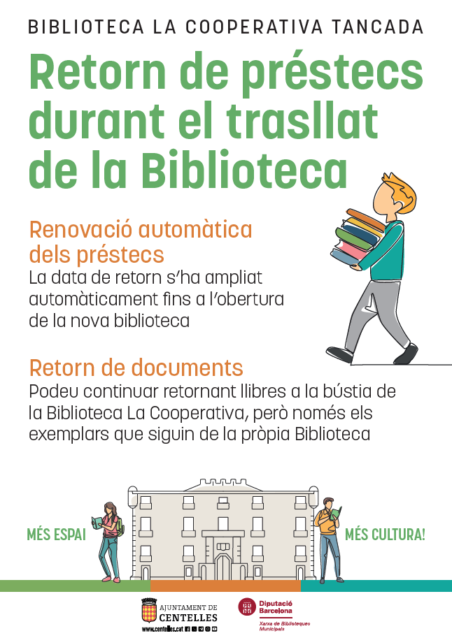 La data de retorn s'ha ampliat automàticament fins a l'obertura de la nova biblioteca