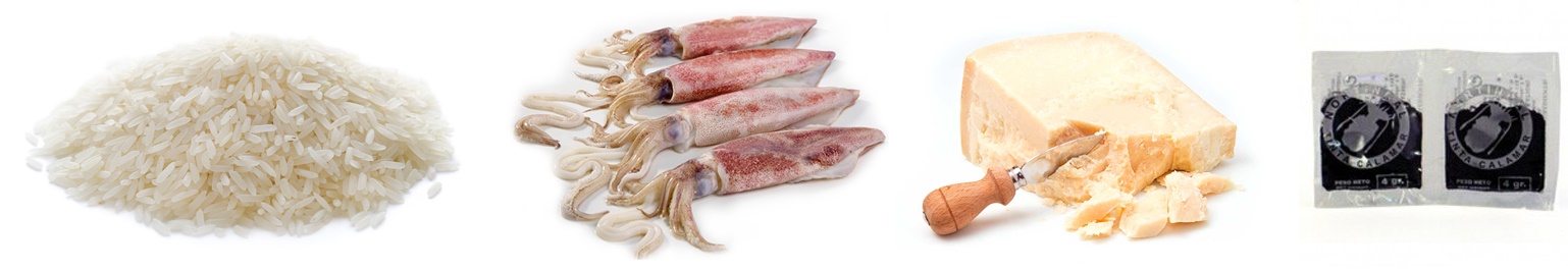 Mentrestant, en una cassola amb una mica de mantega sofregiu la ceba picada. Quan estigui dauradeta, afegiu-hi l'arròs i deixeu-ho sofregir un parell de minuts més. Després, poseu-hi la resta de tinta de calamar, remeneu-ho bé, afegiu-hi el fumet calent i deixeu-ho coure tot junt durant 15 minuts.