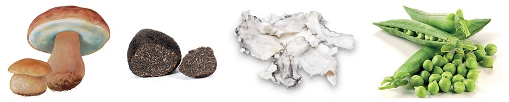 Tripa de bacallà amb pèsols, ceps i tòfona.