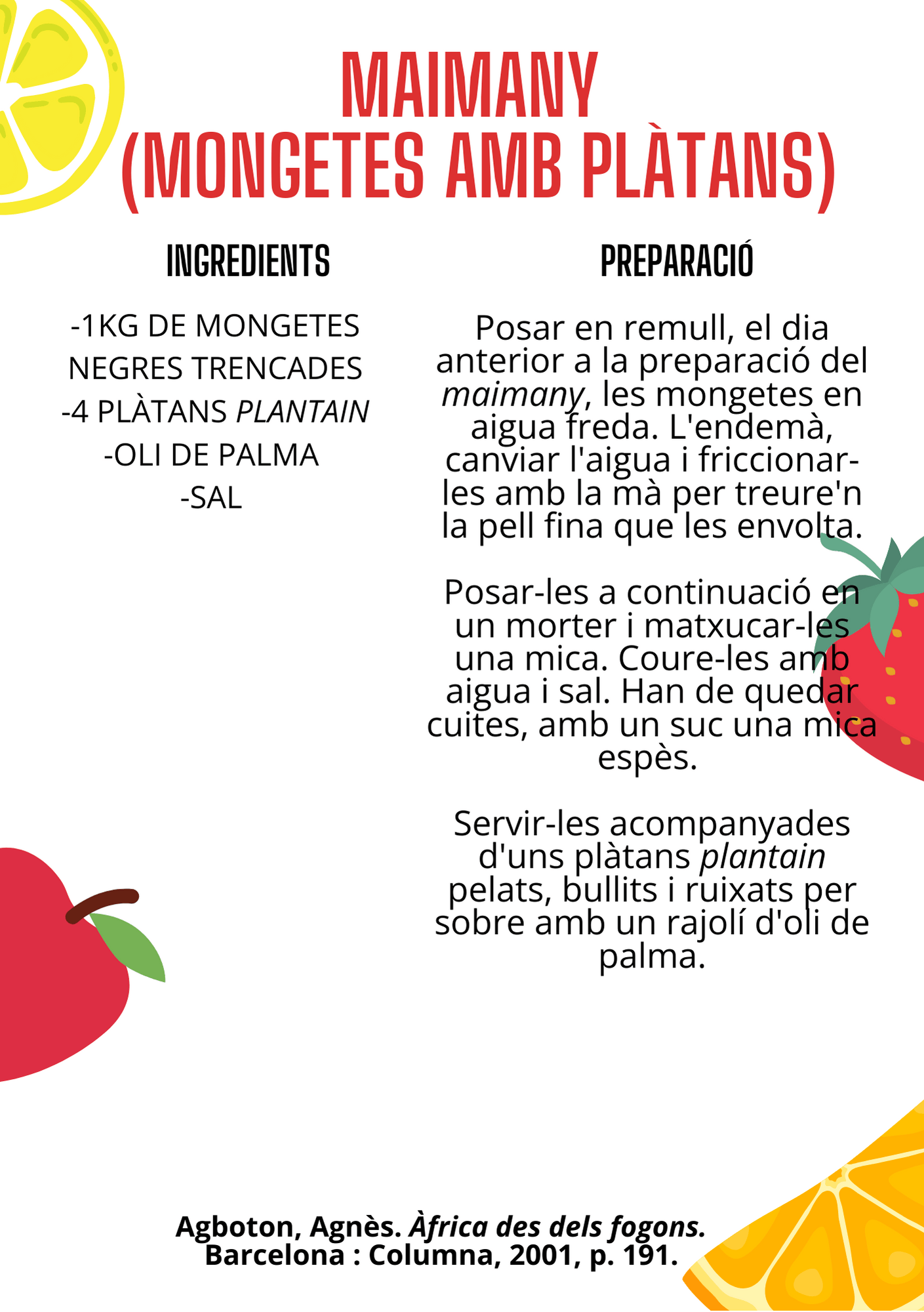 RECEPTA RECOMANADA: mongetes amb plàtans (pàg. 191).