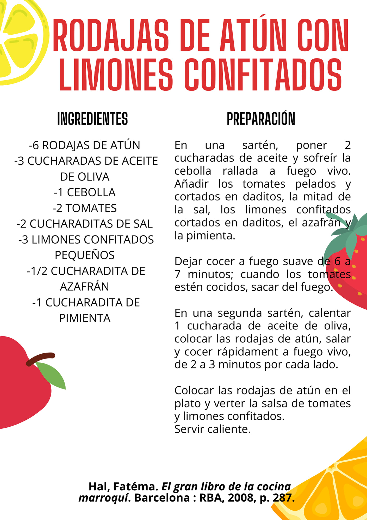 RECEPTES RECOMANADES: rodanxes de tonyina amb llimones confitades (pàg. 287), cuscús amb figues kuran i faves fresques (pàg. 350) i olives morades amb taronges amargues (pàg. 511).