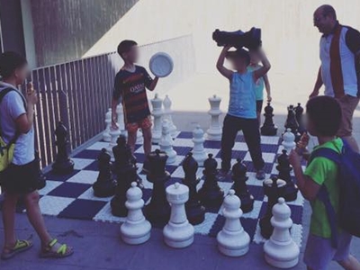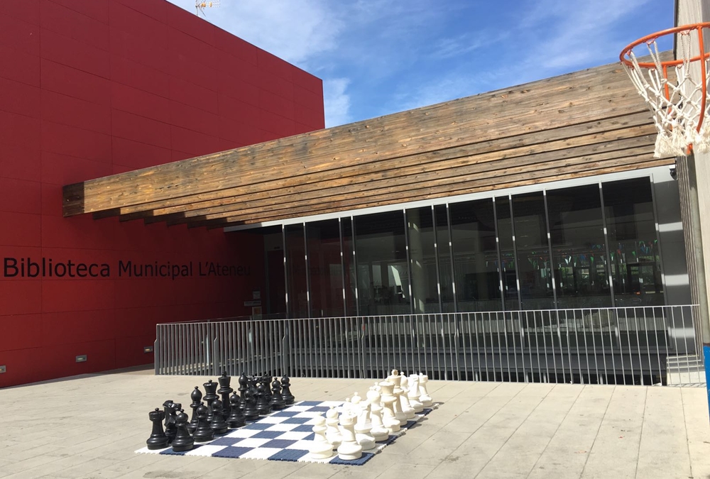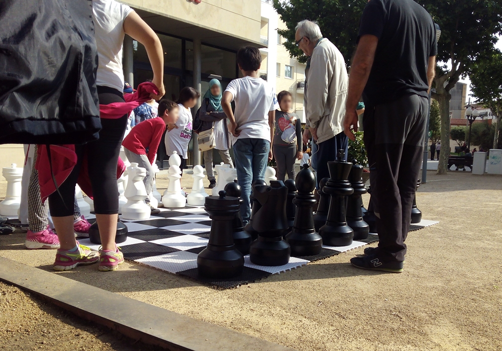 Amb el bon temps arriben les partides d'escacs gegants a l'aire lliure a la Biblioteca Santa Oliva d'Olesa de Montserrat. Això va passar durant el mes de juny de 2016.