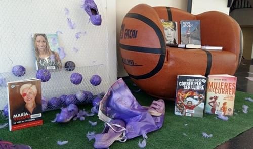 Molts elements diferents recreen un ambient esportiu a diverses exposicions fetes durant els anys 2014 i 2015, cada mes un esport diferent feia una petita invasió de l'espai més dinàmic de la biblioteca. Bàsquet, esquí, natació , arts marcials, diferents modalitats van tenir una forta presència a la biblioteca.