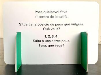 Aquest abecedari té una fitxa per lletra. Per una cara, l’autora ha escrit en una paraula el que veu a cada lletra. Per la cara de fons blanc, el lector ha d’imaginar el que veu. El format de les fitxes, inspirades en les House of Cards que va idear el matrimoni d’arquitectes Charles i Ray Eames l’any 1952, permet fer construccions i obrir la mirada al volum. El joc obre espai al dubte, a l’error, a la pregunta, al dubte. I el dubte és poesia. Es presenten quatre propostes lúdiques per jugar amb les fitxes: Oooh! Mirar - Castells en l’aire! Construir -Veig, veig! Descobrir -1, 2, 3, 4! Perdre el Nord.