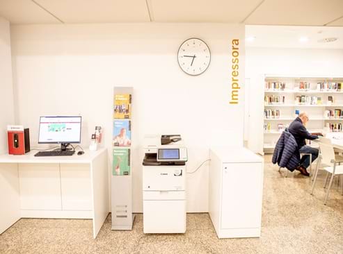 La biblioteca especialitzada en cooperativisme, disposa de centres d’interès d’aprenentatge de llengües, cultura popular, desenvolupament personal, espai jove, famílies, món laboral i viatges i turisme actiu.