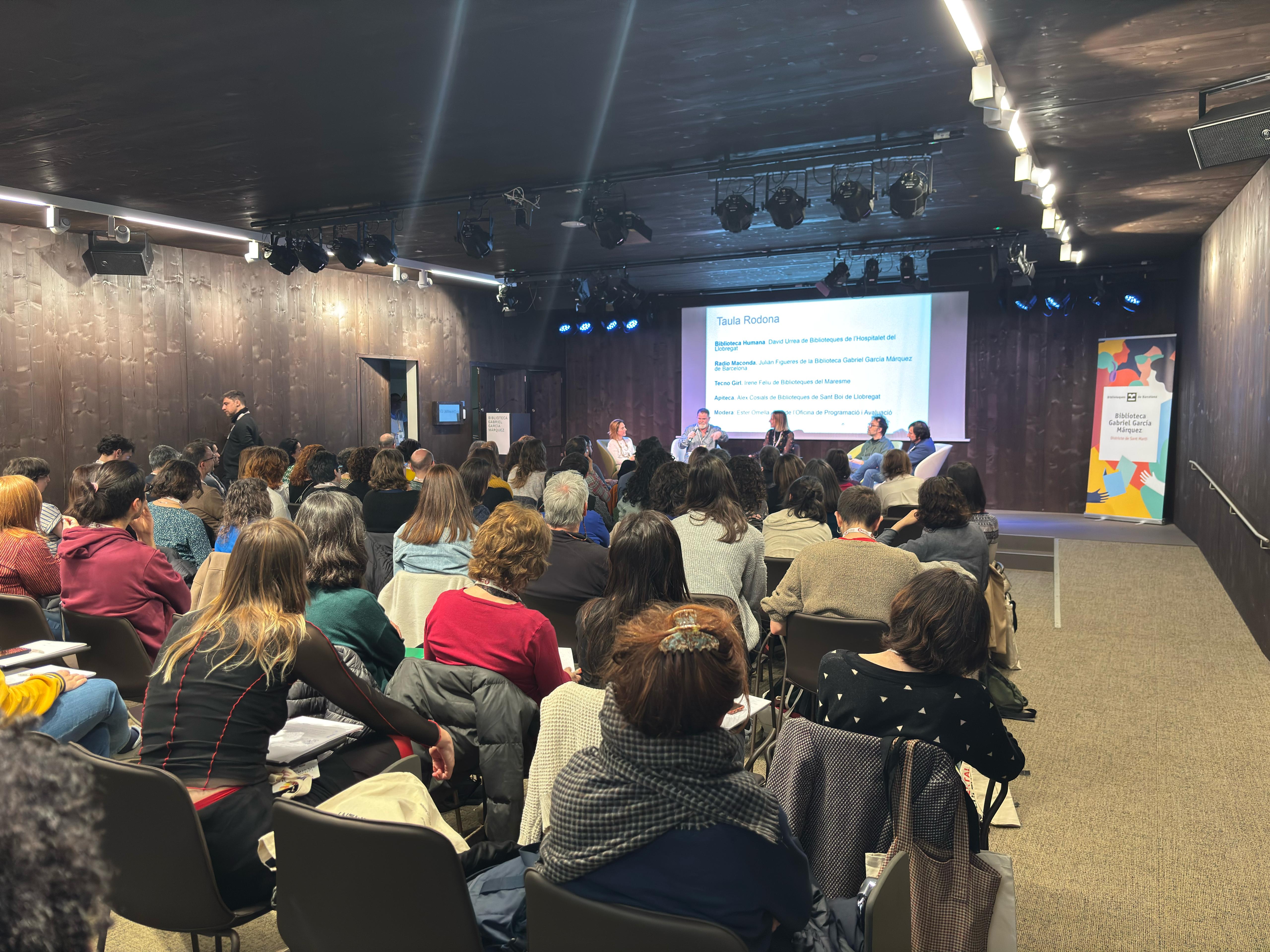 La sala d’actes de la Biblioteca Gabriel García Márquez de Barcelona ha quedat petita per acollir a totes les persones interessades en la nova convocatòria d’ajuts Cocrea BiblioLab, en la presentació que s’ha celebrat el dijous 3 d’abril de 2025 al matí.