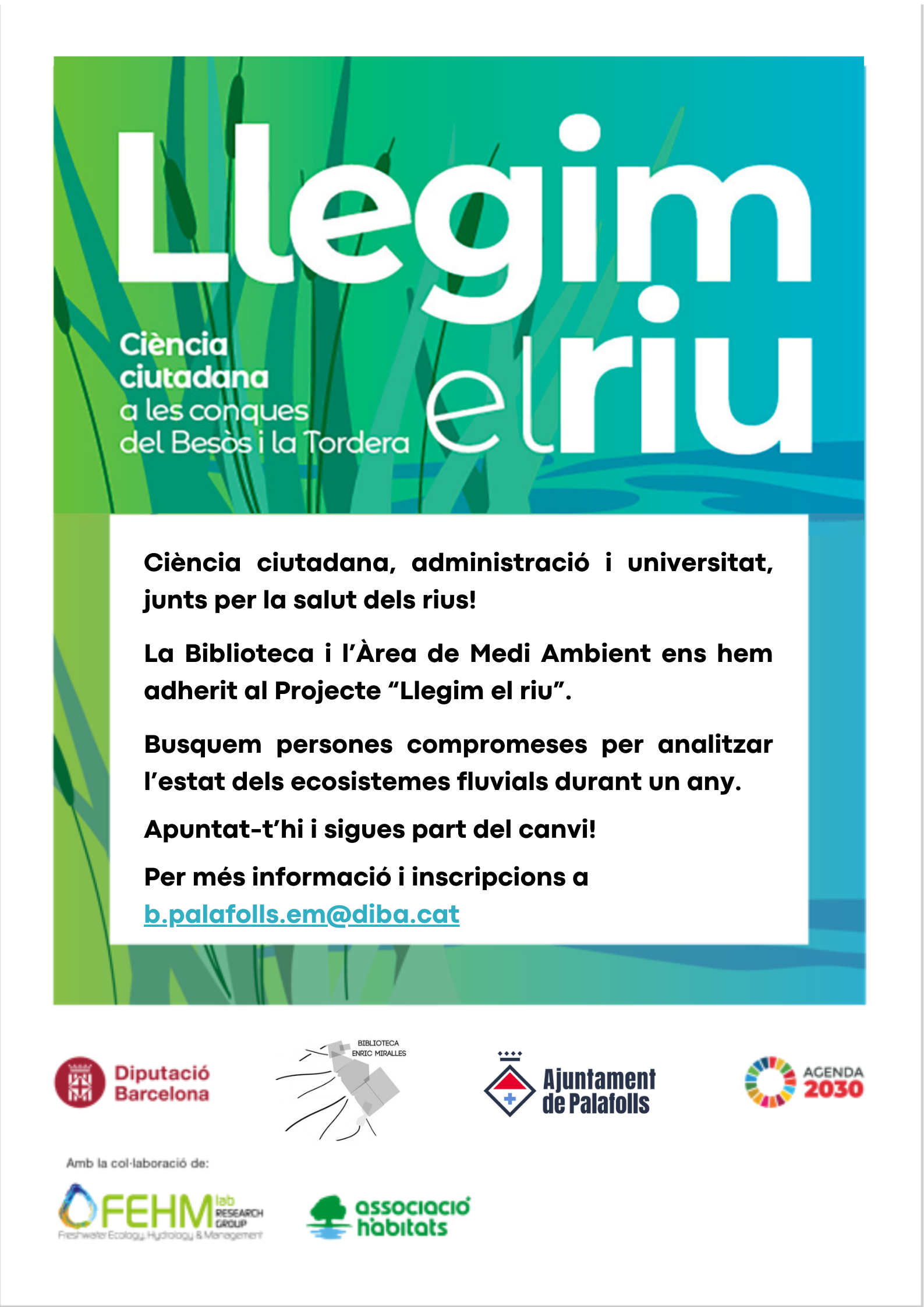 La Biblioteca i l’Àrea de Medi Ambient ens hem adherit al Projecte “Llegim el riu”, una iniciativa de la Diputació de Barcelona, coordinada pel grup de recerca FEHMLab de la UB i amb la col·laboració de l’Associació Hàbitats i la Fundació Rivus.