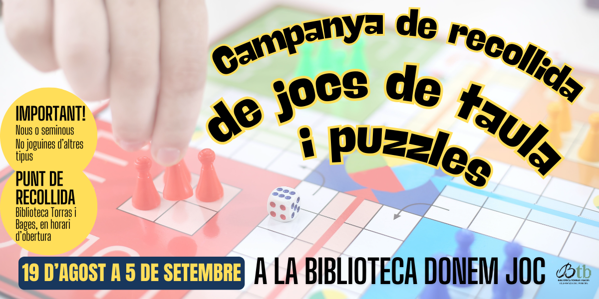 A la Biblioteca Torras i Bages 'Donem joc!' Recollim jocs de taula i puzzles en bon estat