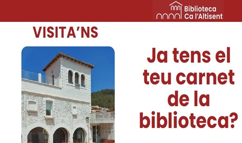 - NOVETAT: Nou canal de difusió per a la programació d'activitats "Biblioteca Ca l'Altisent-Activitats" vía Whatsapp. https://whatsapp.com/channel/0029VaDdsfK9MF91lnM7h631