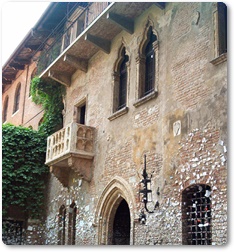 A la preciosa ciutat de Verona, es pot visitar la casa de Julieta, que amb el seu fotogènic balcó s'ha convertit en lloc de peregrinació per a milers de parelles que s'hi juren amor etern. Al jardí del palau hi ha una estàtua de l'heroïna que ha esdevingut símbol de la ciutat i la seva tomba es pot visitar al Monestir de San Francesco in Corso.