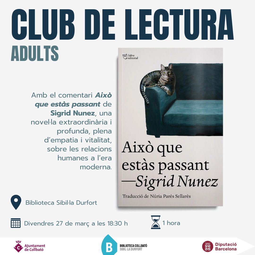 Amb el comentari "Això que estàs passant" de Sigrid Nunez, una novel·la extraordinària i profunda, plena d’empatia i vitalitat, sobre les relacions humanes a l’era moderna.