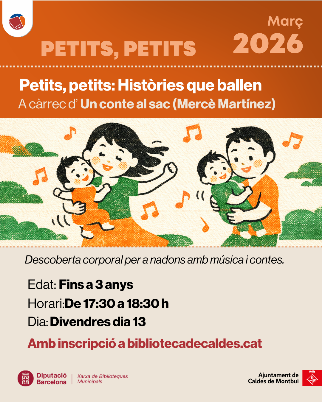 Descoberta corporal per a nadons a través de la música i els contes. Un espai màgic per als més menuts i les seves famílies!