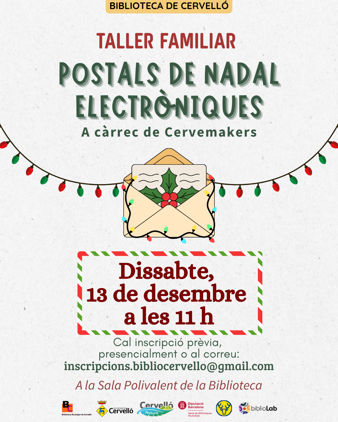 Vine a crear la teva postal de Nadal electrònica, de la mà de l'associació Cervemakers. Una activitat creativa en família on dissenyarem postals nadalenques amb un toc especial, perfectes per enviar els teus millors desitjos d’una manera ben original.