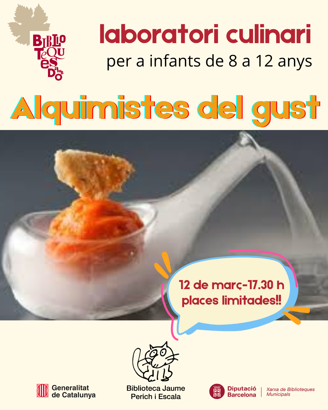 Taller on els participants es converteixen en alquimistes de la cuina i descobreixen el món del raïm i dels seus derivats a través d'experiments culinaris que combinen ciència i creativitat. Taller amb rigor científic, jocs i un ambient teatralitzat que el converteix en una experiència memorable. Dins el projecte Biblioteques amb DO