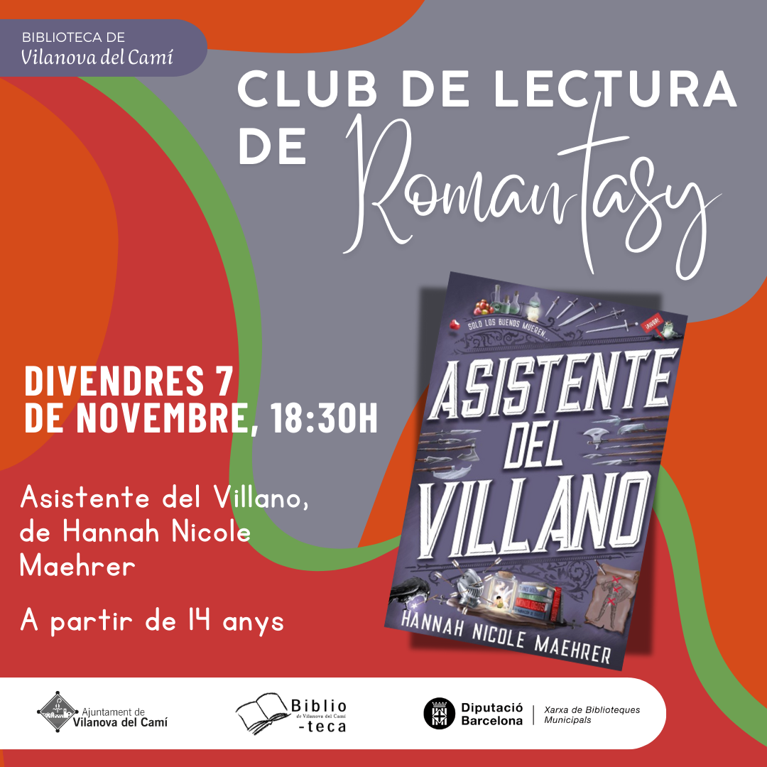 Trobada del club de lectura Romantasy per comentar la novel·la Asistente del villano de Hannah Nicole Maehrer.