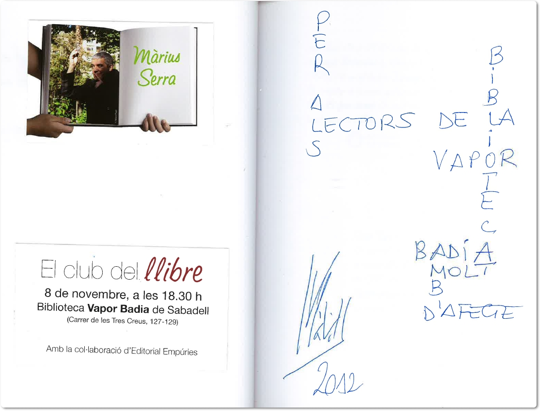 El 8 de novembre de 2012 va visitar la Biblioteca Vapor Badia de Sabadell.