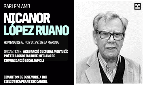 Homenatge. A càrrec de l'Agrupació Cultural Montjuïc Poètic i l'Associació dels Mitjans de Comunicació Local (AMCL). Sala polivalent de la Biblioteca Francesc Candel. Entrada lliure.
