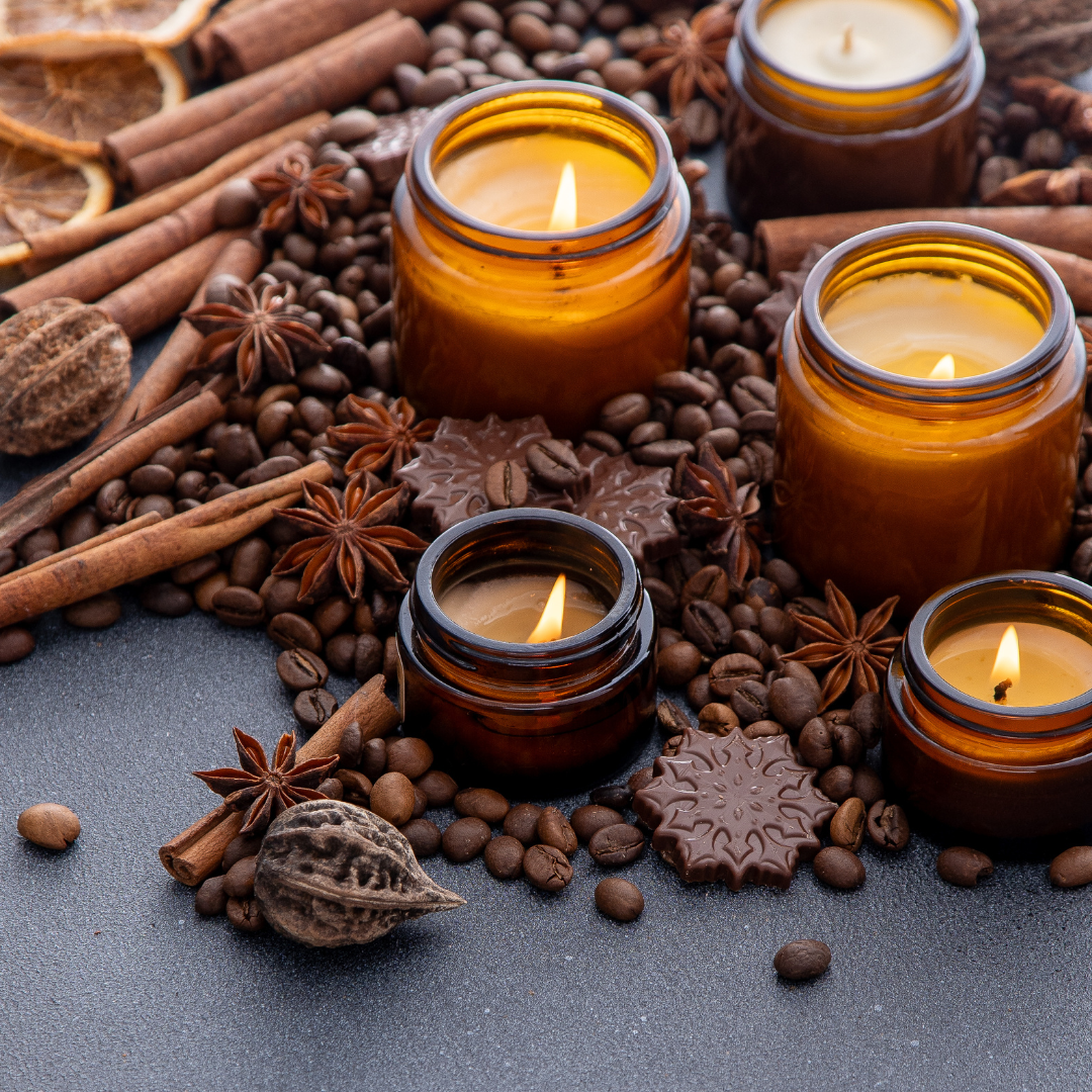 Fragàncies nadalenques, olorant a Nadal, crea un ambient nadalenc amb unes espelmes fetes amb ceres naturals i olis essencials amb un envàs reciclat, de llauna o d'argila.