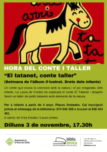 Per a infants a partir de 4 anys. Places limitades. Cal inscripció prèvia al whatsapp de la biblioteca: 674 640 308 o trucant al 938 424 461.