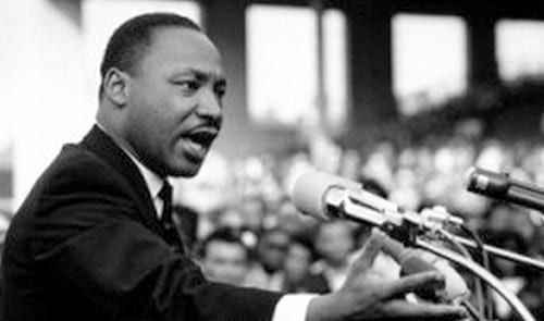 Tinc un somni que un dia aquesta nació s'alçarà i viurà el veritable significat del seu credo: "Creiem que aquestes veritats són evidents per si mateixes: que tots els homes són creats iguals."… Tinc el somni que un dia, en els turons vermells de Geòrgia, els fills dels antics esclaus i els fills dels antics propietaris d'esclaus seran capaços d'asseure's plegats a la taula de la germanor…Somio que un dia, fins i tot a l'Estat de Mississipí, un Estat que se sufoca amb la calor de la injustícia i de l'opressió, es convertirà en un oasi de llibertat i justícia… Tinc el somni que els meus quatre fills un dia viuran en una nació en què no seran jutjats pel color de la seva pell sinó per la naturalesa del seu caràcter. ![]()
