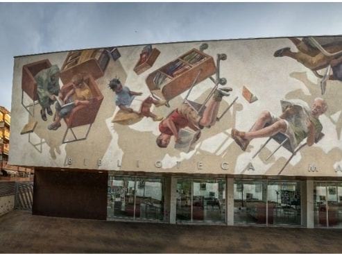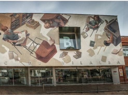 * El mural de la façana de la Biblioteca Marc de Vilalba és creació de l'artista local Cinta Vidal. Es va inaugurar el mes d'abril del 2019.