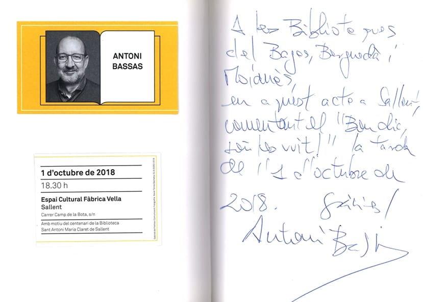 L'1 d'octubre de 2018 va visitar la Biblioteca Sant Antoni Maria Claret de Sallent.