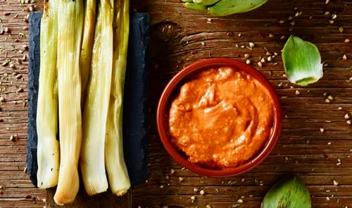 Els calçots són una varietat de cebes tendres que es calcen a mesura que creixen, per això són allargats. Es mengen escalivats, acompanyats d’una salsa especial feta principalment d’ametlles, avellanes, tomàquet, all, julivert, oli i vinagre, tot i que s’hi poden afegir d’altres ingredients. Són originaris de Valls, on estan protegits per la denominació d’origen i s’explica que els va descobrir un camperol quan se li van cremar els calçots que havia collit.