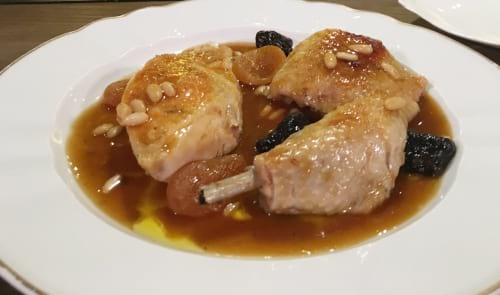 Fem l’aviram en dues coccions. Farem a la cassola les cuixes. Amb la ceba, el tàquet, el Porro, els alls, les orellanes i els pinyons. Tot en una. Un raig de vi.
