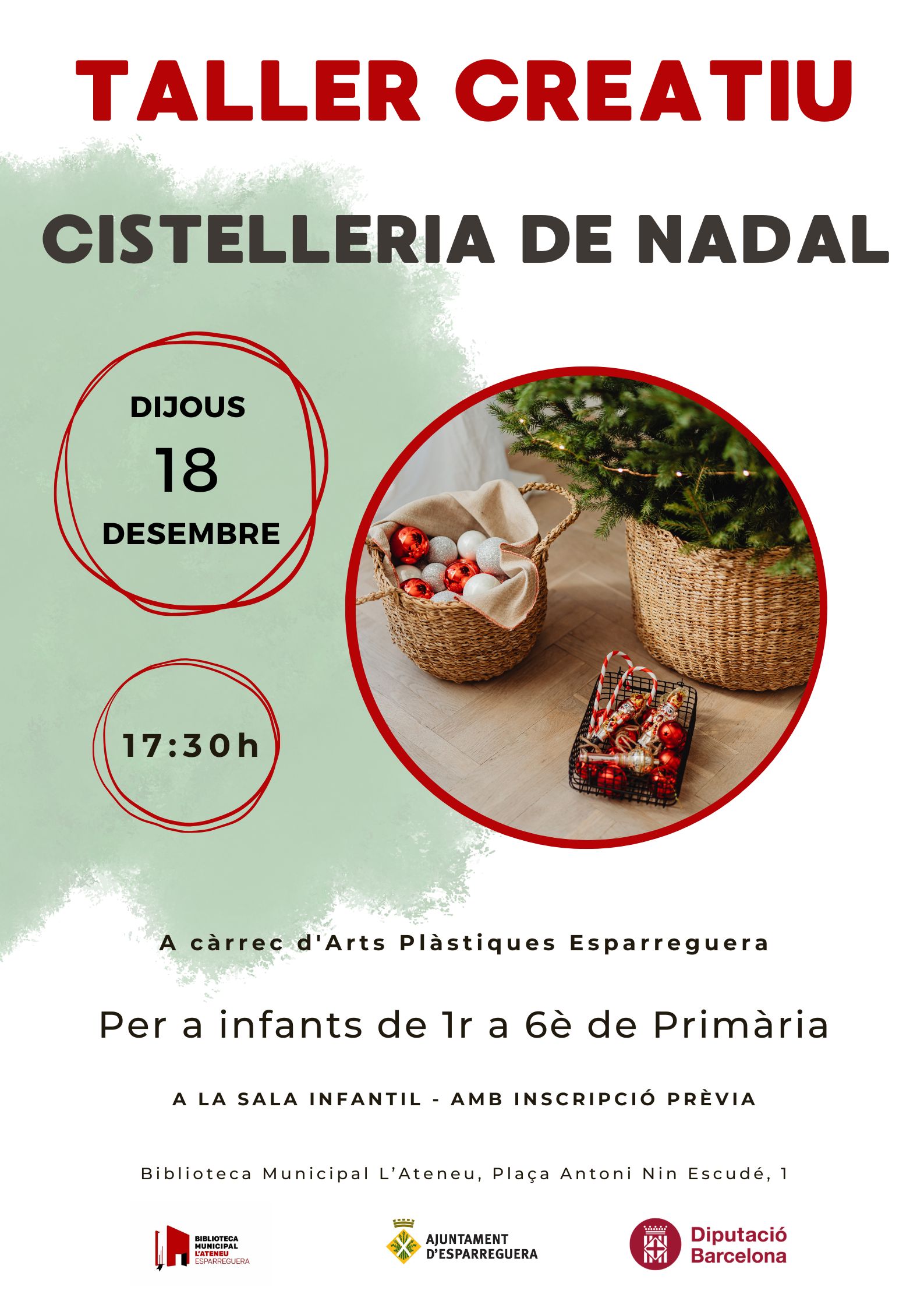 El dijous 18 de desembre us proposem un Taller creatiu de Nadal per a infants on crearem animals de múltiples colors amb llanes i fibres naturals, seguint algunes de les tècniques de la cistelleria tradicional. L’activitat anirà a càrrec d’Arts Plàstiques Esparreguera i està pensada per a infants de 1r a 6è de Primària.