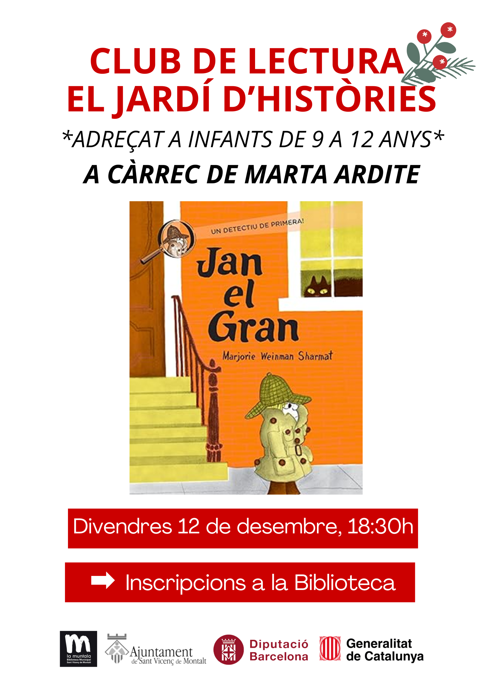 Per a nens i nenes de 9 a 12 anys. A càrrec de la il·lustradora i historiadora de l’art Marta Ardite. Es comentarà l’obra Jan el Gran, de Marjorie Weinman Sharmat.