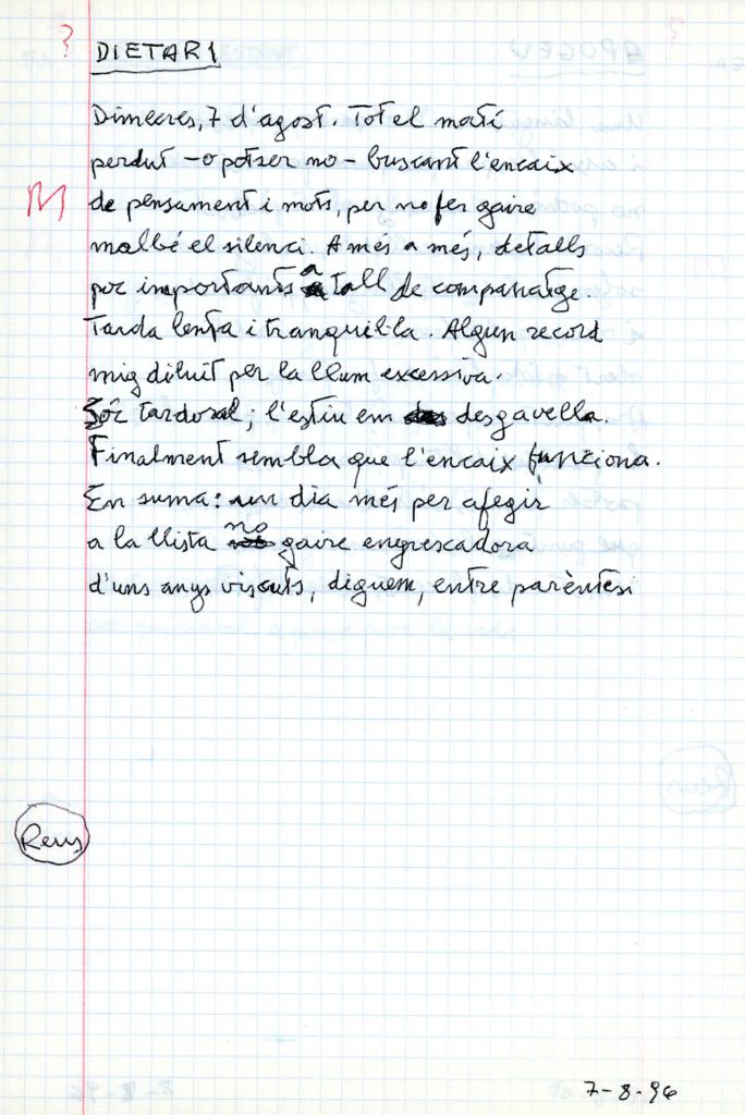 Les llibretes manuscrites ens permeten copsar el seu procés de creació: rectificacions i més rectificacions fins aconseguir un poema rodó. Després dels poemes manuscrits, els mecanografiava per lliurar-los a l’editorial.